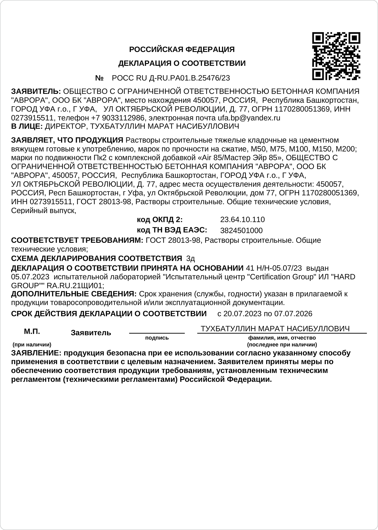 - При заводе работает специализированная лаборатория: каждый замес может быть проверен, по партии оформляется паспорт качества.